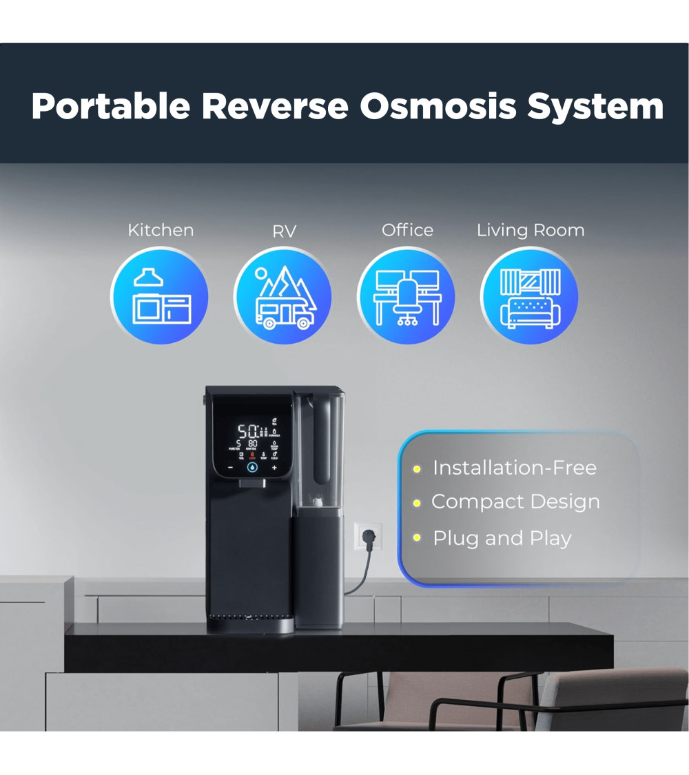 🔹 Atvirkštinio osmoso filtravimas + šarminimas (Alkaline pH+) 0,0001 mikronų RO filtravimas pašalina iki 99% teršalų: chlorą, sunkiuosius metalus, pesticidus, bakterijas, virusus ir kitas priemaišas.