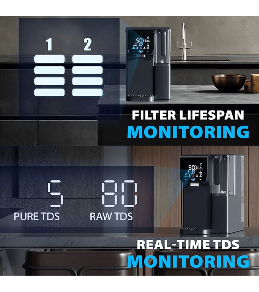Сенсорный экран показывает TDS в реальном времени, статус фильтров и качество воды.